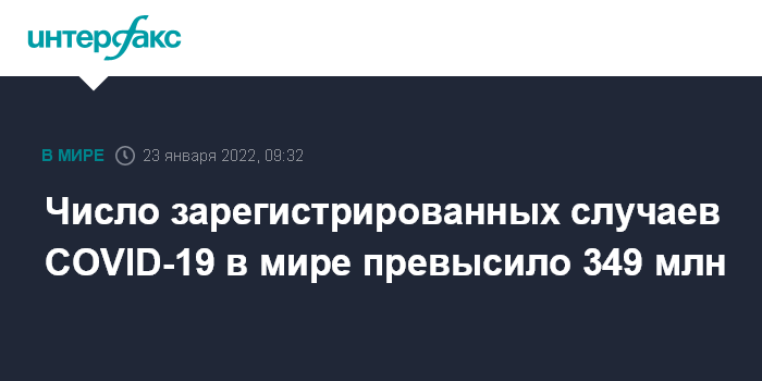 Москва. 23 января. INTERFAX.RU - Число случаев заражения коронавирусом COVID-19 в мире на утро воскресенья достигло 349 млн 154 тыс. 897, свидетельствуют данные американского университета Джонса Хопкинса.