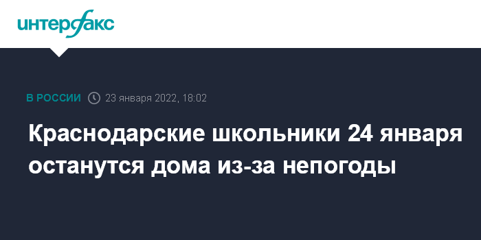 Москва. 23 января. INTERFAX.RU - Школьникам Краснодара в понедельник устроят дополнительный выходной, сообщает в воскресенье краевой оперативный штаб.