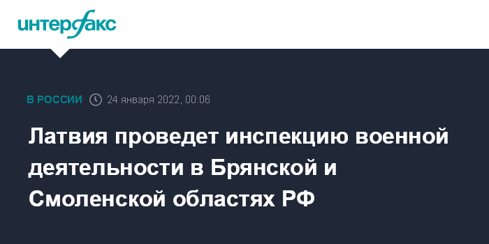Латвия проведет инспекцию военной деятельности в Брянской и Смоленской областях РФ