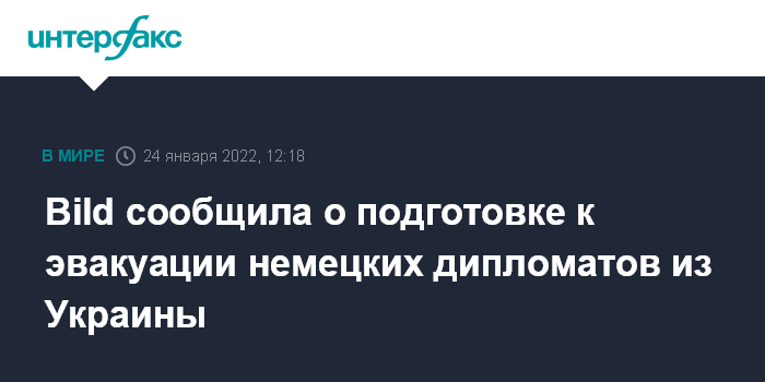Москва. 24 января. INTERFAX.RU - МИД Германии, согласно сообщению газеты Bild, готовит план эвакуации своих сотрудников из Украины на случай обострения ситуации в регионе, однако в министерстве это не подтверждают.