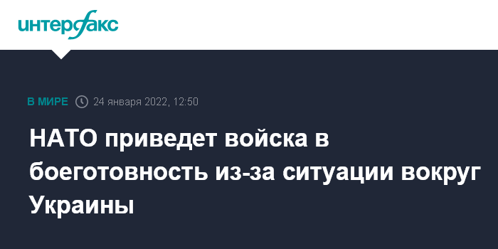 Москва. 24 января. INTERFAX.RU - НАТО приводит свои вооруженные силы в состояние боевой готовности и отправляет дополнительные корабли и истребители в Восточную Европу в связи с наращиванием российских военных сил вблизи Украины.