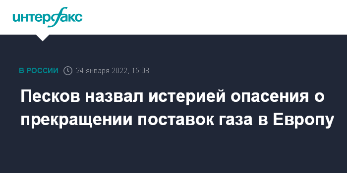 Москва. 24 января. INTERFAX.RU - Публикации о том, что Европа опасается, что в ответ на санкции Россия может ограничить поставки газа, в Кремле назвали примером фейковой истерии. Там напомнили, что Россия всегда была надежным гарантом энергетической безопасности Европы.