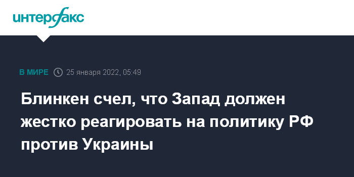 Москва. 25 января. INTERFAX.RU - Госсекретарь США Энтони Блинкен считает, что Запад вынужден жестко реагировать на политику России в отношении Украины и других стран региона во избежание негативных последствий глобального масштаба.