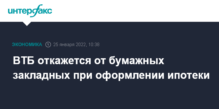 ВТБ откажется от бумажных закладных при оформлении ипотеки