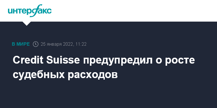 Москва. 25 января. INTERFAX.RU - Швейцарский банк Credit Suisse Group AG сообщил, что зарезервировал дополнительно 500 млн швейцарских франков ($545 млн) на юридические расходы, что будет отражено в отчетности за четвертый квартал 2021 года.