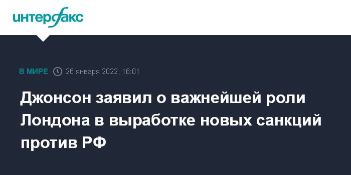 "Правительство Соединенного Королевства... сплачивает Запад вместе, чтобы получить наиболее жесткий возможный пакет санкций с целью сдержать президента (РФ Владимира - ИФ) Путина в том, что, как считаю, будет безрассудным катастрофическим вторжением", - сказал он на слушаниях в парламенте, вызванных расследованием вечеринок в правительственной резиденции в нарушении правил локдауна.
