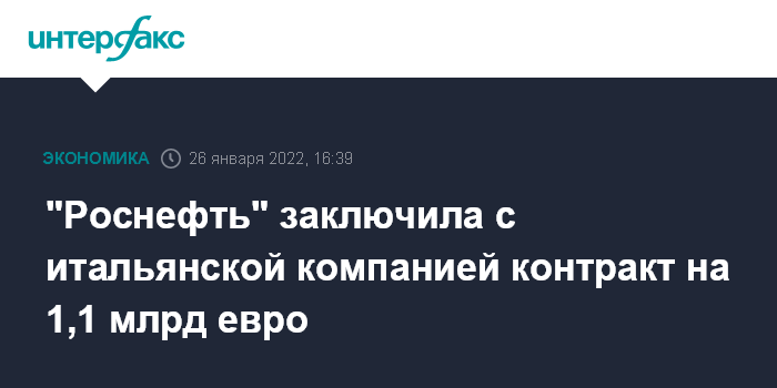 "Роснефть" заключила с итальянской компанией контракт на 1,1 млрд евро