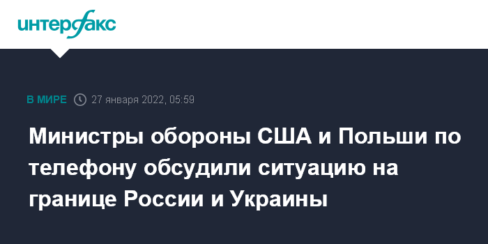 Москва. 27 января. INTERFAX.RU - Министры обороны США и Польши Ллойд Остин и Мариуш Блащак в ходе телефонной беседы обсудили ситуацию на российско-украинской границе, сообщил Пентагон.