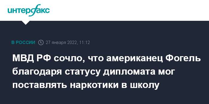 МВД РФ сочло, что американец Фогель благодаря статусу дипломата мог поставлять наркотики в школу
