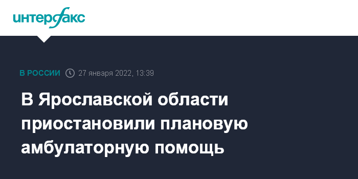Москва. 27 января. INTERFAX.RU - Власти Ярославской области временно приостановили оказание плановой амбулаторной медицинской помощи из-за обострения эпидемиологической ситуации, сообщает пресс-служба правительства региона в четверг.