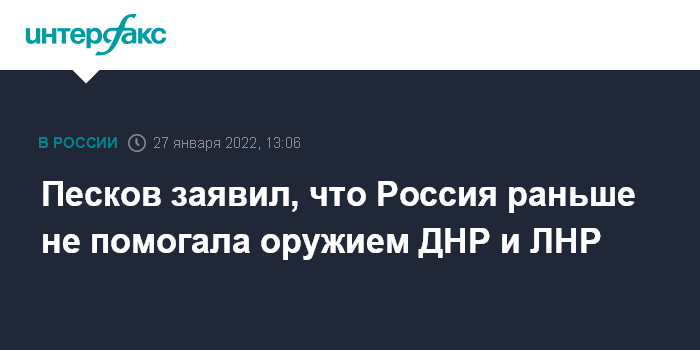 Песков заявил, что Россия раньше не помогала оружием ДНР и ЛНР