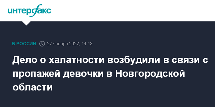Дело о халатности возбудили в связи с пропажей девочки в Новгородской области