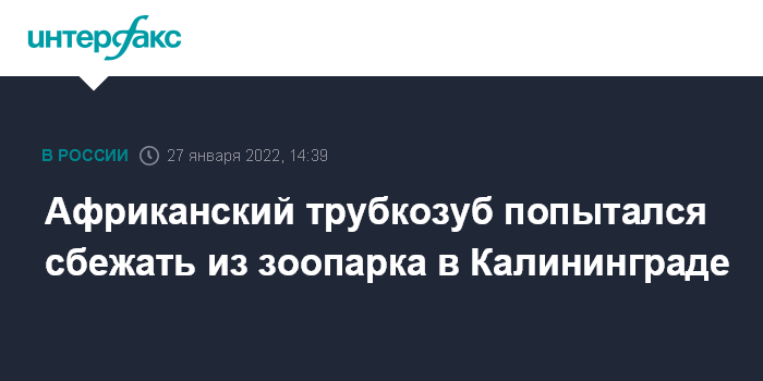 Москва. 27 января. INTERFAX.RU - Сотрудники зоопарка Калининграда сумели вовремя предотвратить побег африканского трубкозуба, сообщила "Интерфаксу" директор учреждения зоопарка Светлана Соколова.