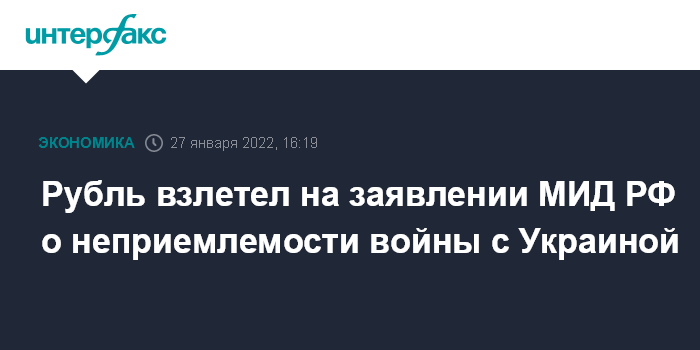 Рубль взлетел на заявлении МИД РФ о неприемлемости войны с Украиной