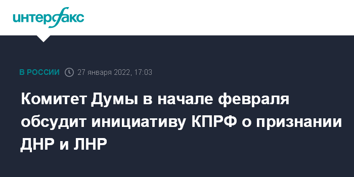 Комитет Думы в начале февраля обсудит инициативу КПРФ о признании ДНР и ЛНР