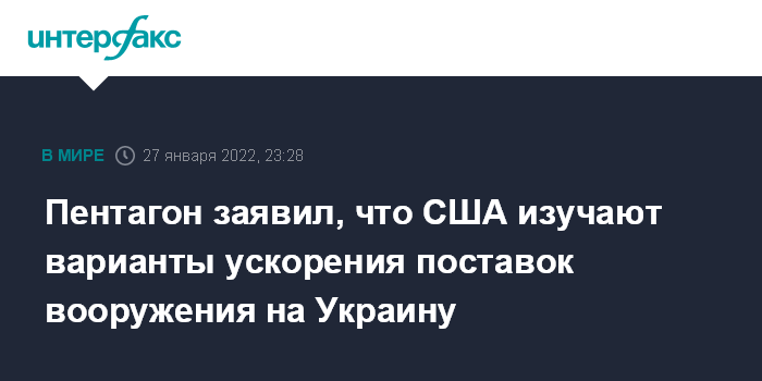 Москва. 27 января. INTERFAX.RU - Власти США рассматривают варианты для ускорения поставок вооружения на Украину, заявил в четверг представитель Пентагона Джон Кирби.