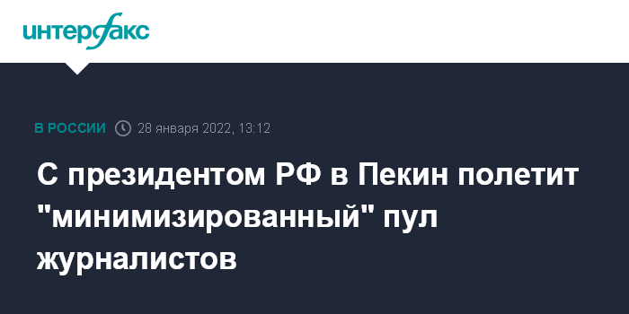 С президентом РФ в Пекин полетит "минимизированный" пул журналистов