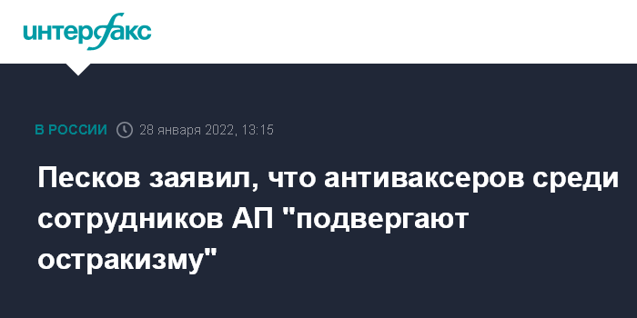 Песков заявил, что антиваксеров среди сотрудников АП "подвергают остракизму"