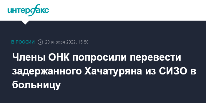 Москва. 28 января. INTERFAX.RU - Члены московской Общественной наблюдательной комиссии (ОНК) обнаружили в СИЗО-7 гражданина США Андрэ Хачатуряна, задержанного в конце декабря 2021 года в транзитной зоне аэропорта "Шереметьево" с пистолетом и патронами, и попросили перевести его в больницу из-за состояния здоровья.
