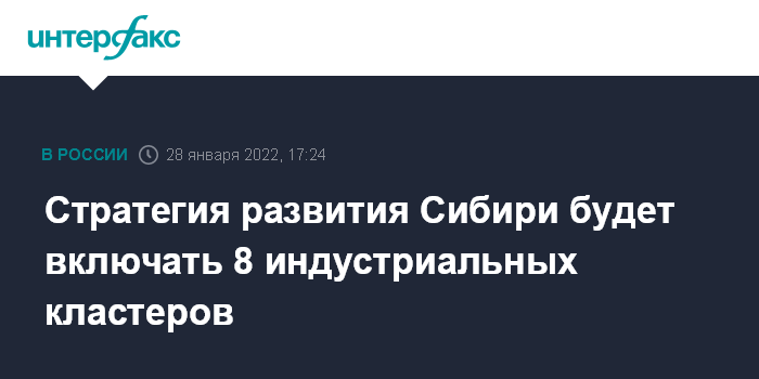 Стратегия развития Сибири будет включать 8 индустриальных кластеров