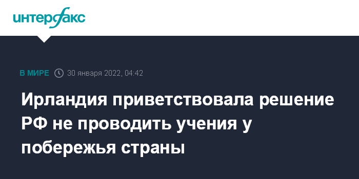 Ирландия приветствовала решение РФ не проводить учения у побережья страны