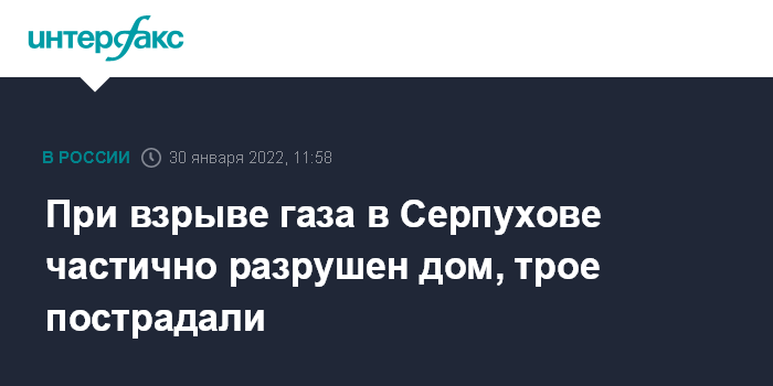 "По предварительной информации, сегодня на ул. Карпова (п. Большевик городского округа Серпухов) произошёл хлопок газо-воздушной смеси, частично разрушен дом. Пострадали три человека, в том числе малолетний", - сообщили в телеграм-канале прокуратуры.