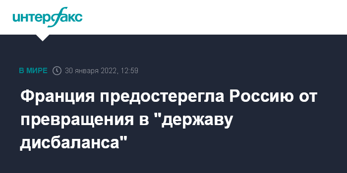 Франция предостерегла Россию от превращения в "державу дисбаланса"