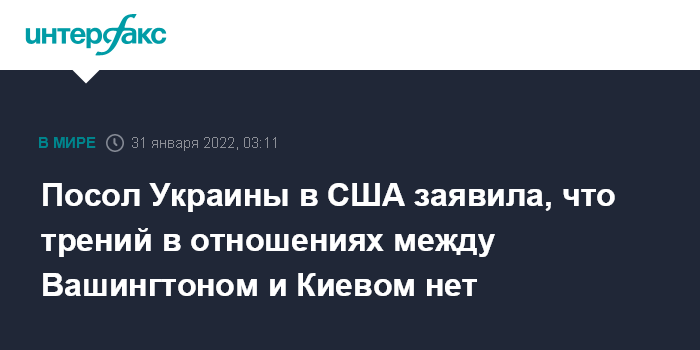 Москва. 31 января. INTERFAX.RU - Посол Украины в США Оксана Маркарова опровергла сообщения о растущей напряженности в отношениях между Вашингтоном и Киевом.