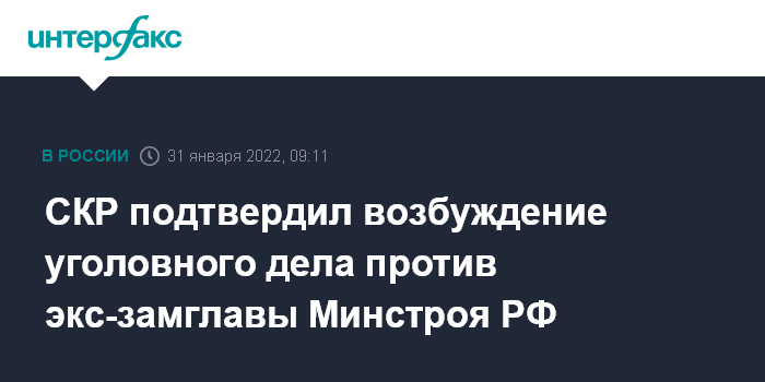 СКР подтвердил возбуждение уголовного дела против экс-замглавы Минстроя РФ