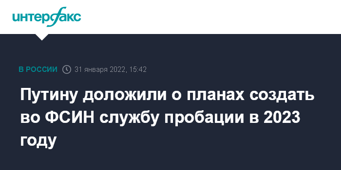 Министр добавил, что готовиться к созданию службы пробации нужно начинать уже сейчас и, в частности, ввести во ФСИН должность замдиректора по пробации. Путин поддержал это предложение.