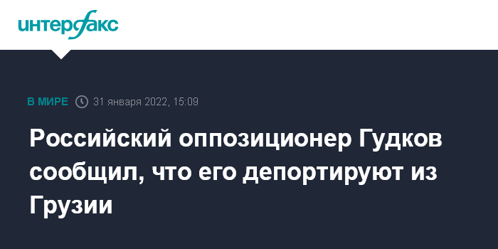 Москва. 31 января. INTERFAX.RU - Оппозиционер, бывший депутат Госдумы Дмитрий Гудков, который прилетел из Киева в Тбилиси, сообщил, что его депортируют из Грузии.