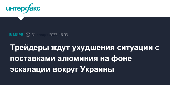 Трейдеры ждут ухудшения ситуации с поставками алюминия на фоне эскалации вокруг Украины