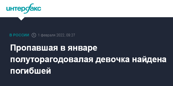 Пропавшая в январе полуторагодовалая девочка найдена погибшей