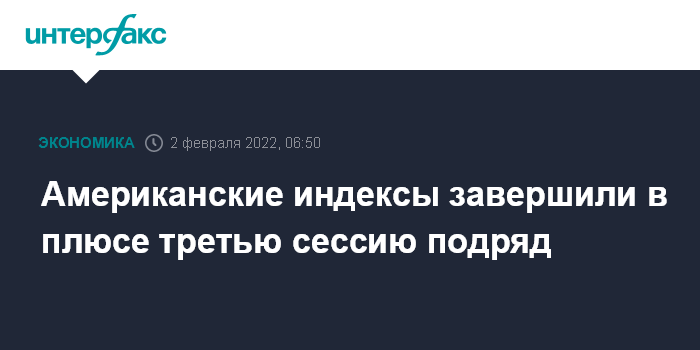 Москва. 2 февраля. INTERFAX.RU - Американские фондовые индексы, снижавшиеся в начале сессии во вторник, завершили торги в плюсе и продлили серию повышений до трех торговых дней подряд.