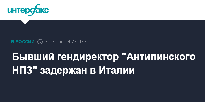 Бывший гендиректор "Антипинского НПЗ" задержан в Италии