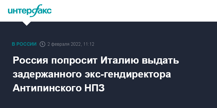 Россия попросит Италию выдать задержанного экс-гендиректора Антипинского НПЗ