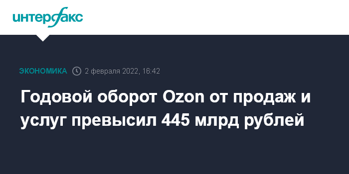 Годовой оборот Ozon от продаж и услуг превысил 445 млрд рублей