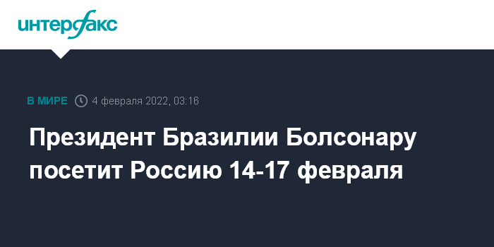 Эти даты фигурируют в опубликованном министерством документе, в котором говорится, какие данные участники поездки должны предоставить бразильским властям. "Визит запланирован на 14-17 февраля 2022 года", - говорится в тексте.