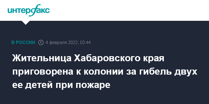 Жительница Хабаровского края приговорена к колонии за гибель двух ее детей при пожаре