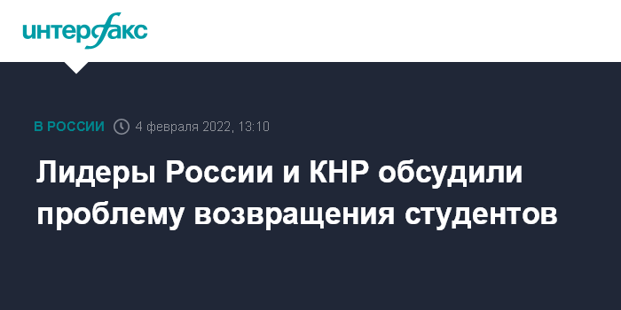 "По студентам - Путин был признателен Си за принятые меры, которые позволили нашим студентам, которые на два года "зависли" здесь (в России - ИФ), вернуться в Китай и продолжить обучение. Но дальше все будет зависеть от эпидемиологической ситуации. Но - да, тема затрагивалась", - сказал он на брифинге.