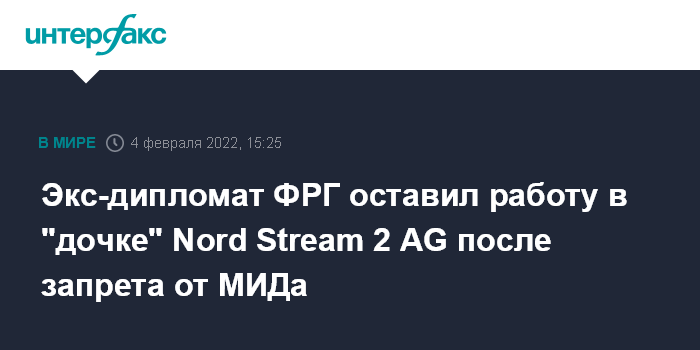 Экс-дипломат ФРГ оставил работу в "дочке" Nord Stream 2 AG после запрета от МИДа
