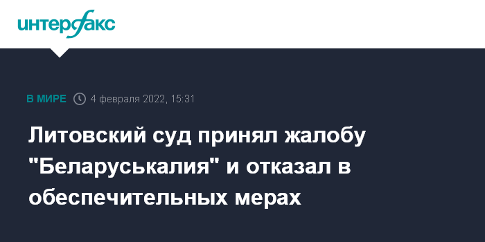 Литовский суд принял жалобу "Беларуськалия" и отказал в обеспечительных мерах