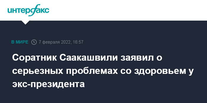 Москва. 7 февраля. INTERFAX.RU - Депутат парламента Грузии Григол Вашадзе заявил, что здоровье находящегося в заключении бывшего президента Михаила Саакашвили серьезно подорвано, и ему необходима квалифицированная медицинская помощь.