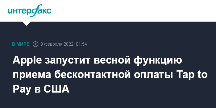 Москва. 9 февраля. INTERFAX.RU - Американская компания Apple начнет весной этого года запуск опции Tap to Pay для предпринимателей, позволяющей принимать бесконтактную оплату при помощи iPhone, сообщается во вторник на сайте компании.