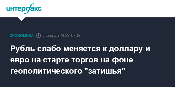 Москва. 9 февраля. INTERFAX.RU - Доллар США и евро на "Московской бирже" в среду утром меняются незначительно, рубль почти стабилен к бивалютной корзине на фоне геополитического "затишья".