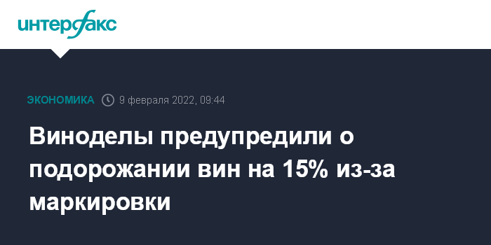 Минпромторг в конце января предложил начать эксперимент по маркировке отдельных видов алкогольной продукции, включая вино, вермуты, спиртовые настойки, ликеры с 1 июня 2022 года по 31 августа 2023 года.