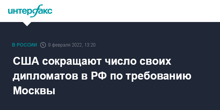 Москва. 9 февраля. INTERFAX.RU - Численность дипломатического состава посольства США в Москве продолжает сокращаться в соответствии с требованиями российской стороны, сообщил в среду замглавы МИД РФ Сергей Рябков.