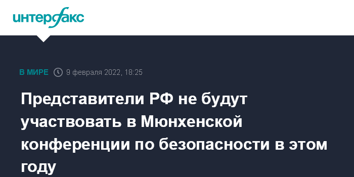 Представители РФ не будут участвовать в Мюнхенской конференции по безопасности в этом году