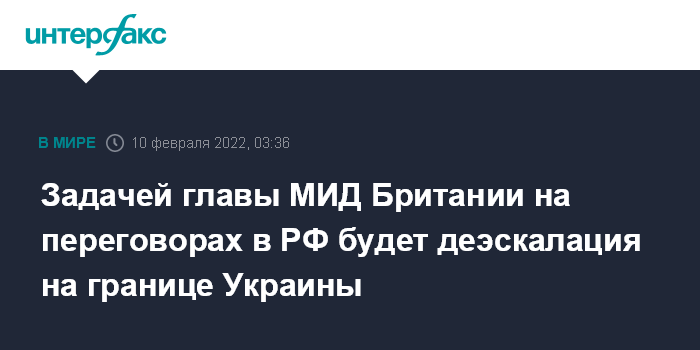 Трасс прилетела в Москву накануне, переговоры начнутся в четверг, а 11 февраля в российскую столицу должен прибыть министр обороны Великобритании Бен Уоллес. Даунинг-стрит заявляет, что "Великобритания возглавляет текущие дипломатические усилия и усилия по сдерживанию".
