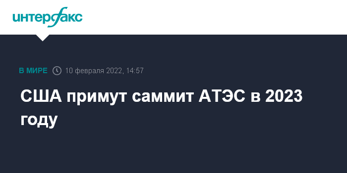 Москва. 10 февраля. INTERFAX.RU - Саммит Азиатско-Тихоокеанского экономического сотрудничества (АТЭС) пройдет в 2023 году в США, сообщает Белый дом.